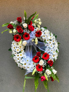 Open Wreath, Accentuated with flower clusters on the left top and bottom.